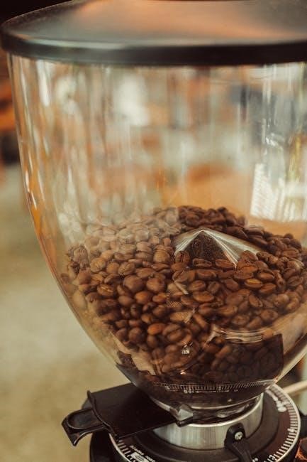 Essential for functionality is the grinder blade, responsible for grinding the beans; The carafe collects the brewed coffee, and the control panel allows you to select settings like grind control and brew strength. Don’t forget the filter basket, crucial for holding the paper filter. Familiarizing yourself with these parts will simplify cleaning and troubleshooting, ensuring years of delicious coffee!
