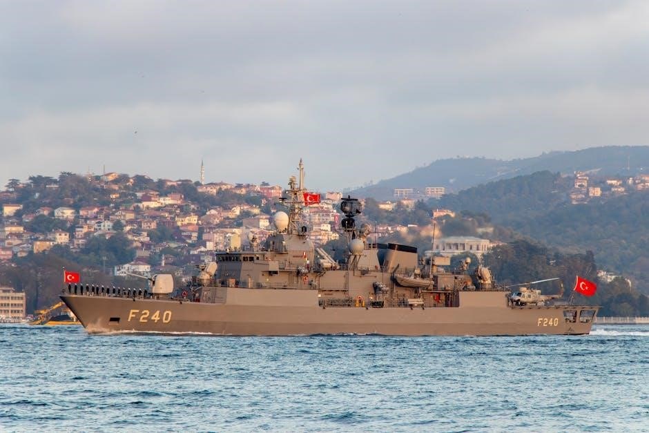 Naval terms PDFs categorize language into distinct areas reflecting shipboard life and operations. Key categories include ship types (frigates, destroyers, tankers), navigation & seamanship (berth, abeam, capstan), and weaponry (ordnance, convoy escort). Understanding these divisions is vital for interpreting naval documentation and communication.