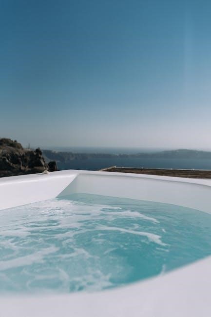 The jet control button activates the AirJet massage system, providing a soothing and relaxing experience. Some models feature multiple jet settings for varied intensity. Pay attention to the panel’s indicators; they’ll alert you to filter reminders or potential error codes. Familiarize yourself with these indicators to proactively address any issues. The control panel is designed for easy operation, even while enjoying the warmth of your spa. Remember to keep the panel dry to ensure optimal functionality and longevity.